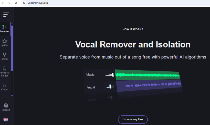 Selanjutnya saya coba menggunakan tools pada website AI untuk vocal remover. Misalnya pada website : https://vocalremover.org/